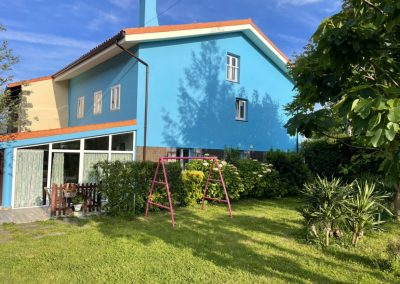 Casa a 2,5 km de la playa con jardín de 1500m2. Dispone de colchoneta gigante, barbacoa, ping-pong, columpio para 2 personas y posibilidad de alquiler de bicicletas.