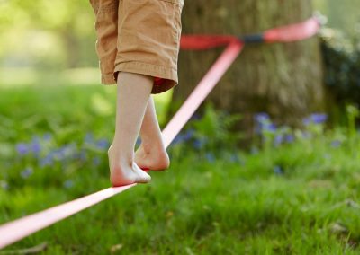Puro equilibrio con una cinta enganchada de un extremo al otro, esta característica convierte este deporte a nuestros alumnos/as en un desafío.